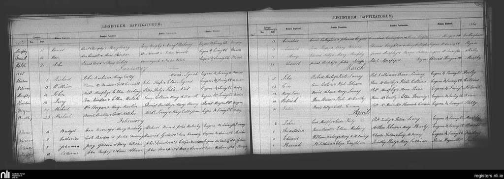Ballincollig; County of Cork; Diocese of Cork and Ross. Baptisms, Dec. 1864 to Apr. 1865