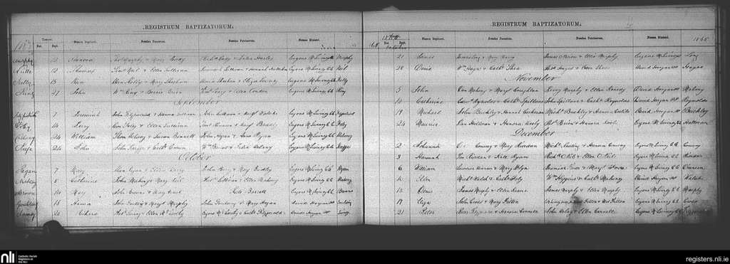 Ballincollig; County of Cork; Diocese of Cork and Ross. Baptisms, Aug. 1865 to Dec. 1865
