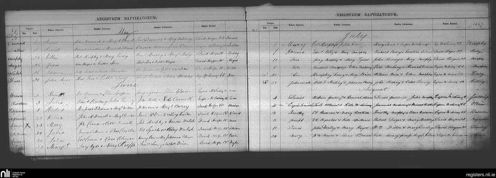 Ballincollig; County of Cork; Diocese of Cork and Ross. Baptisms, May 1867 to Aug. 1867