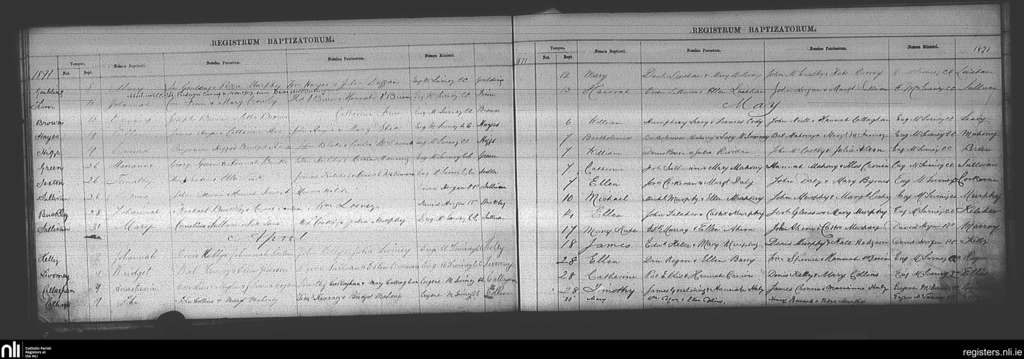 Ballincollig; County of Cork; Diocese of Cork and Ross. Baptisms, Mar. 1871 to May 1871