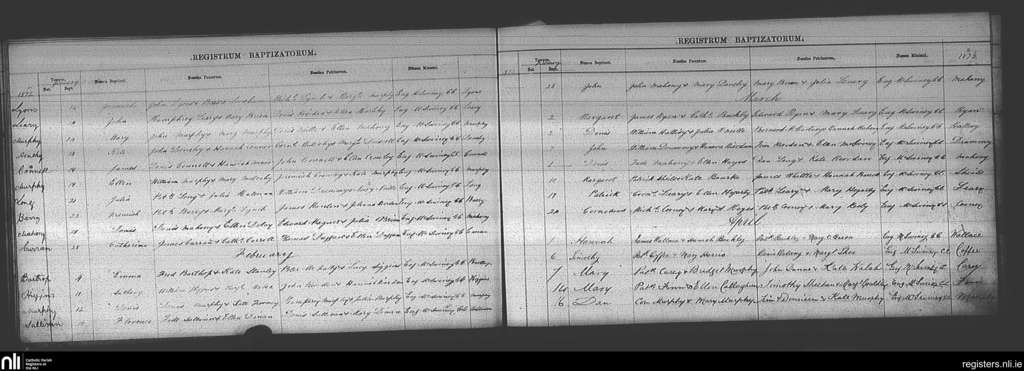 Ballincollig; County of Cork; Diocese of Cork and Ross. Baptisms, Jan. 1872 to Apr. 1872