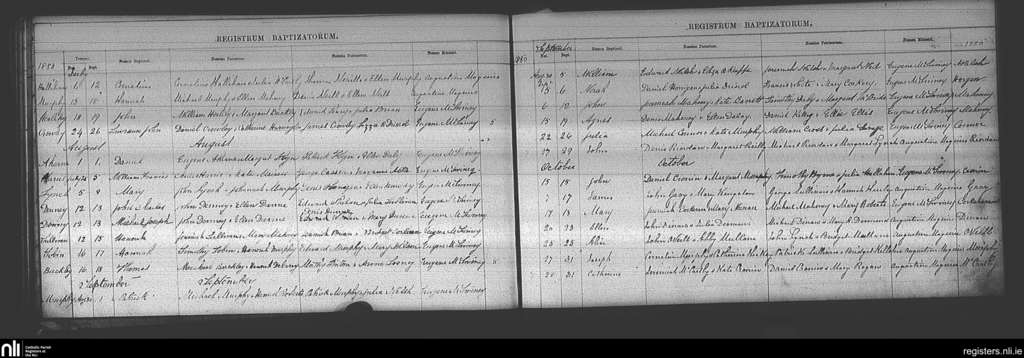 Ballincollig; County of Cork; Diocese of Cork and Ross. Baptisms, July 1880 to Oct. 1880