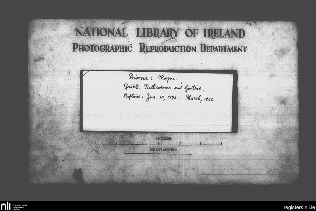 Rathcormack; County of Cork; Diocese of Cloyne. Baptisms