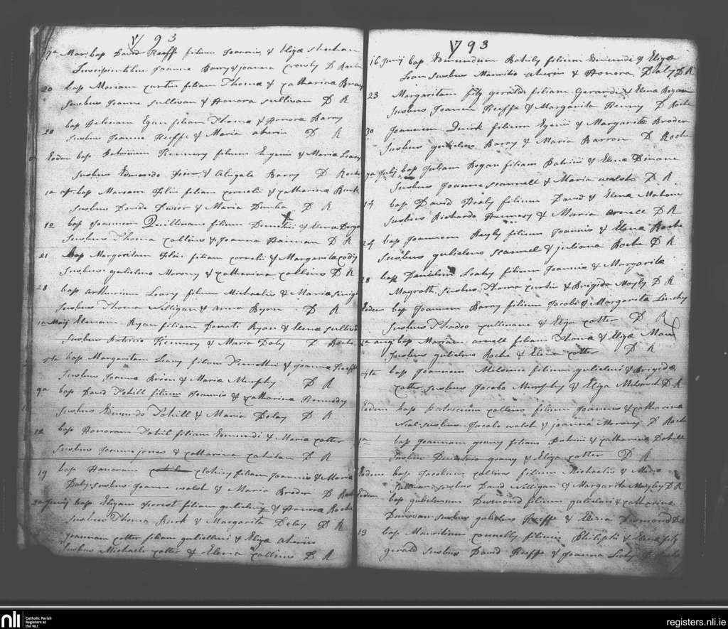 Rathcormack; County of Cork; Diocese of Cloyne. Baptisms, Mar. 1793 to Aug. 1793