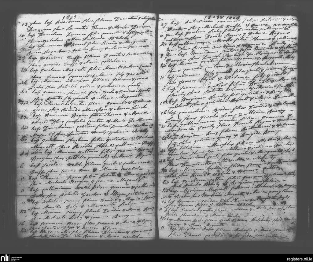 Rathcormack; County of Cork; Diocese of Cloyne. Baptisms, Nov. 1803 to Feb. 1804