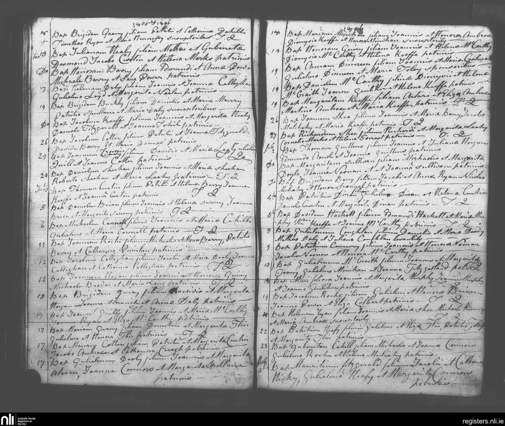 Rathcormack; County of Cork; Diocese of Cloyne. Baptisms, Dec. 1805 to Mar. 1806