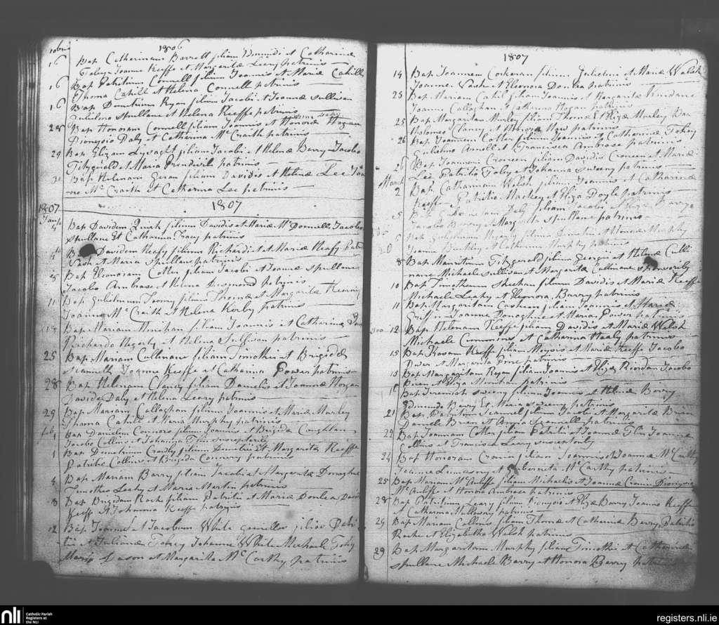 Rathcormack; County of Cork; Diocese of Cloyne. Baptisms, Dec. 1806 to Mar. 1807