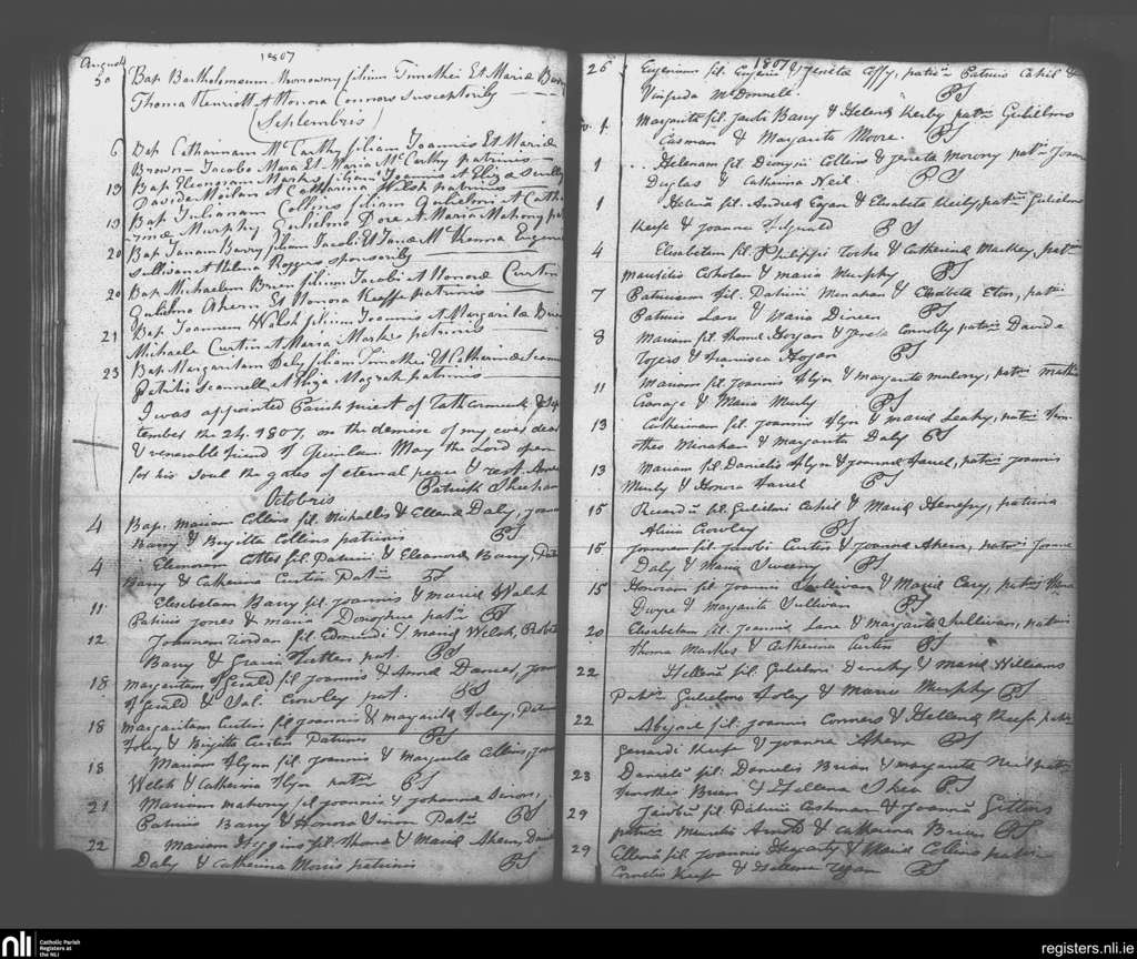 Rathcormack; County of Cork; Diocese of Cloyne. Baptisms, Aug. 1807 to Nov. 1807