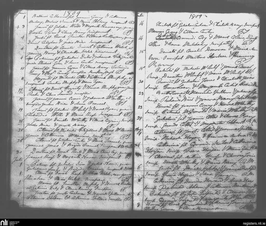 Rathcormack; County of Cork; Diocese of Cloyne. Baptisms, June 1809 to Aug. 1809