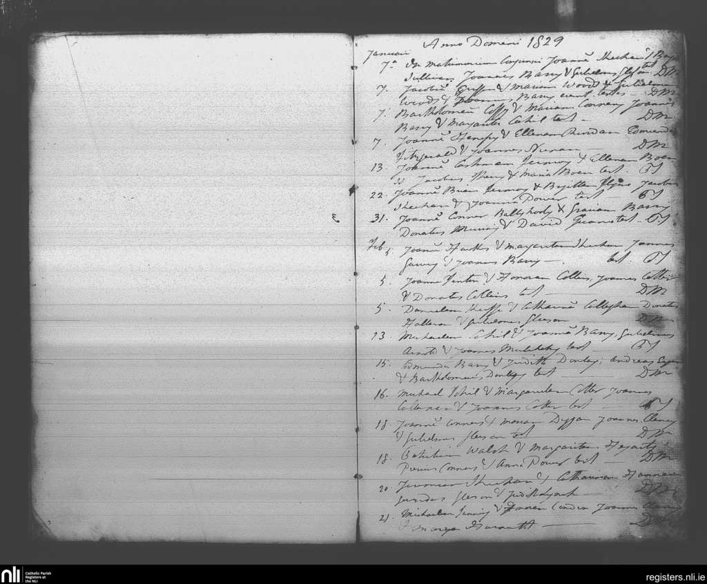 Rathcormack; County of Cork; Diocese of Cloyne. Marriages, Jan. 1829 to Feb. 1829