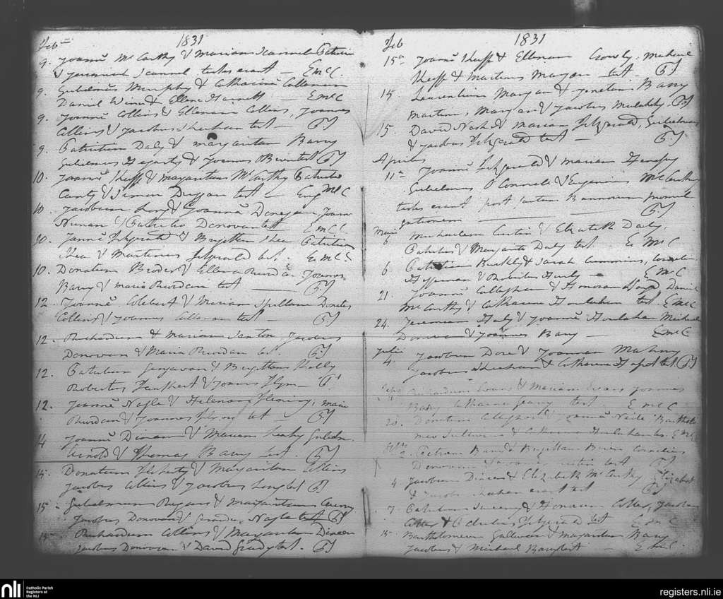 Rathcormack; County of Cork; Diocese of Cloyne. Marriages, Feb. 1831 to Oct. 1831