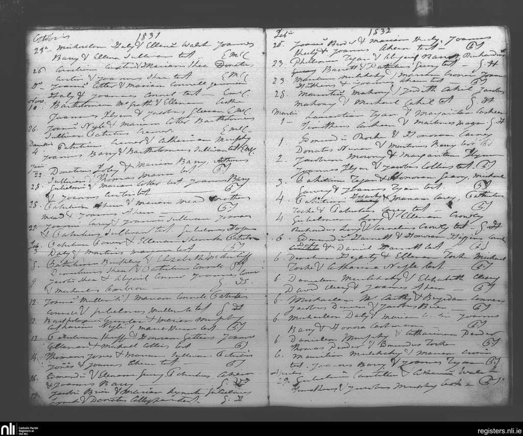 Rathcormack; County of Cork; Diocese of Cloyne. Marriages, Oct. 1831 to Apr. 1832