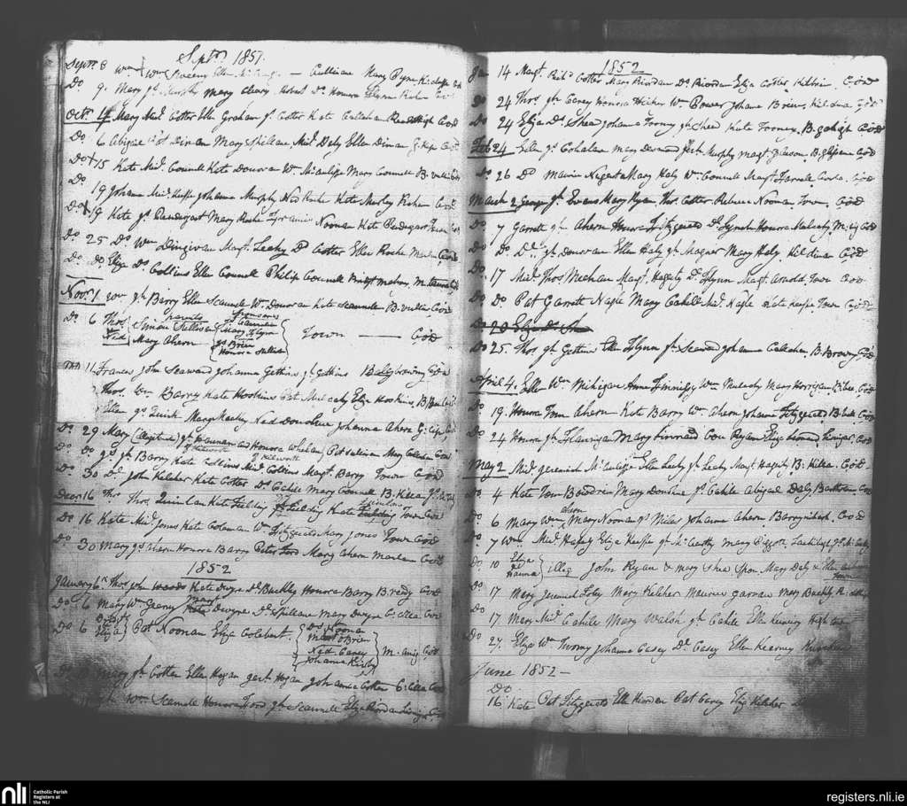Rathcormack; County of Cork; Diocese of Cloyne. Baptisms, Sep. 1851 to June 1852