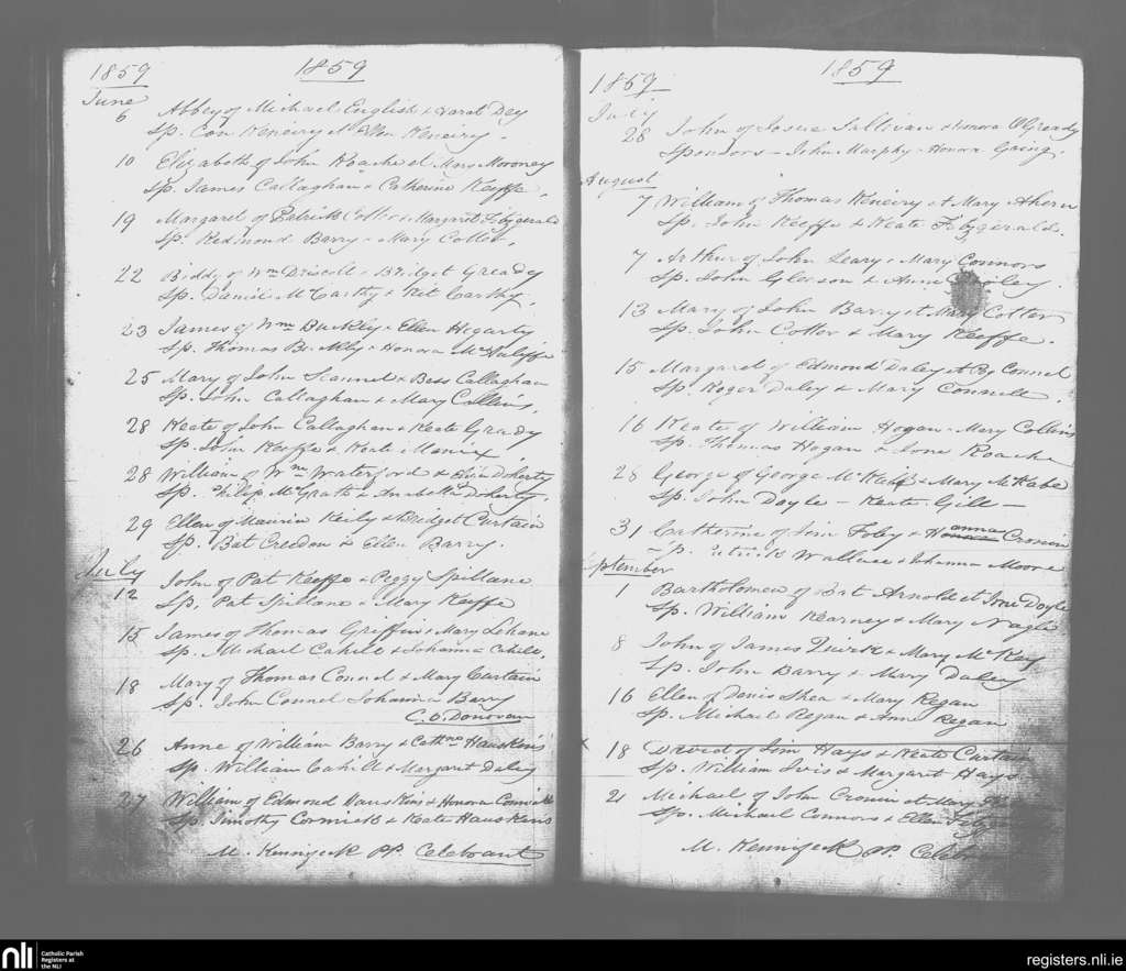 Rathcormack; County of Cork; Diocese of Cloyne. Baptisms, June 1859 to Sep. 1859