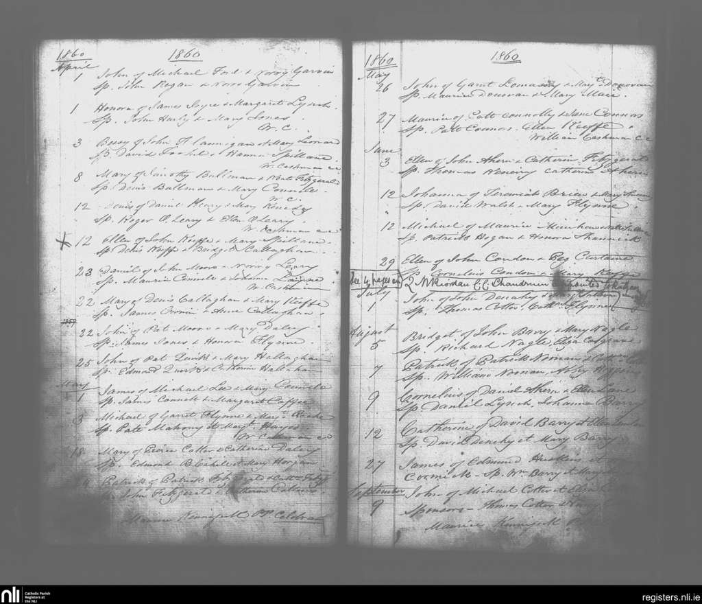 Rathcormack; County of Cork; Diocese of Cloyne. Baptisms, Apr. 1860 to Sep. 1860