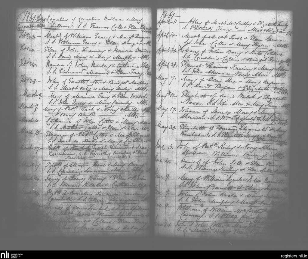 Rathcormack; County of Cork; Diocese of Cloyne. Baptisms, Feb. 1861 to June 1861