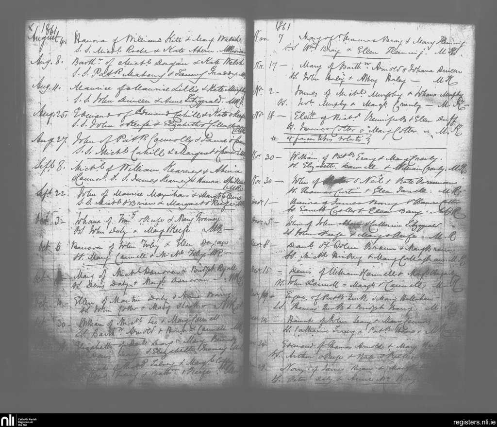 Rathcormack; County of Cork; Diocese of Cloyne. Baptisms, Aug. 1861 to Dec. 1861