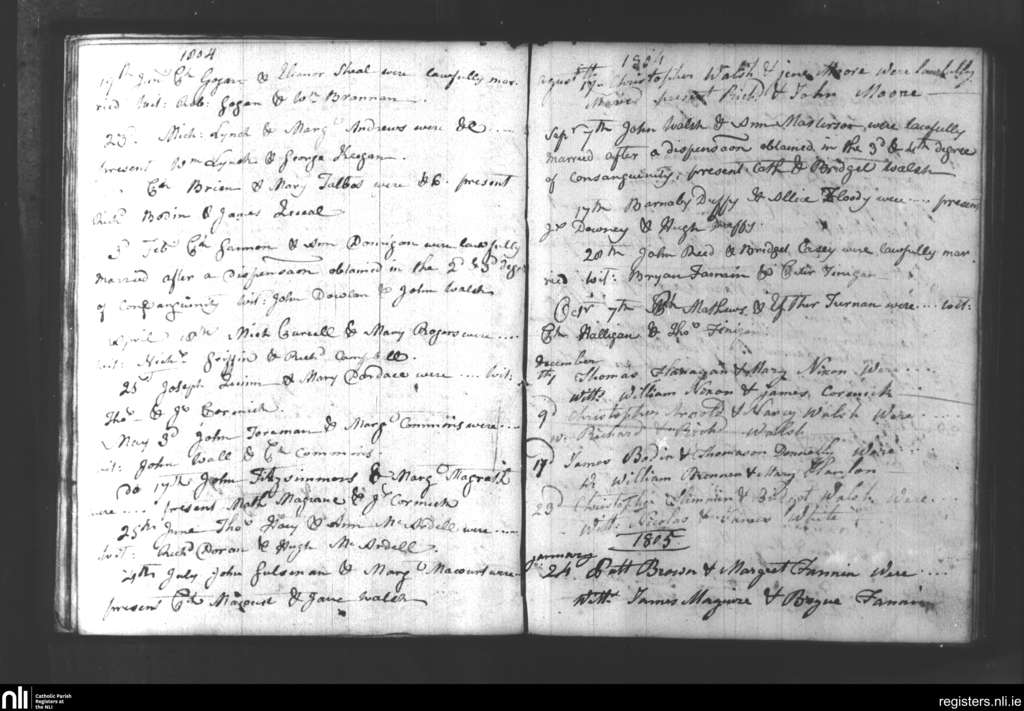 Ardcath; County of Meath; Diocese of Meath. Marriages, Jan. 1804 to Jan. 1805