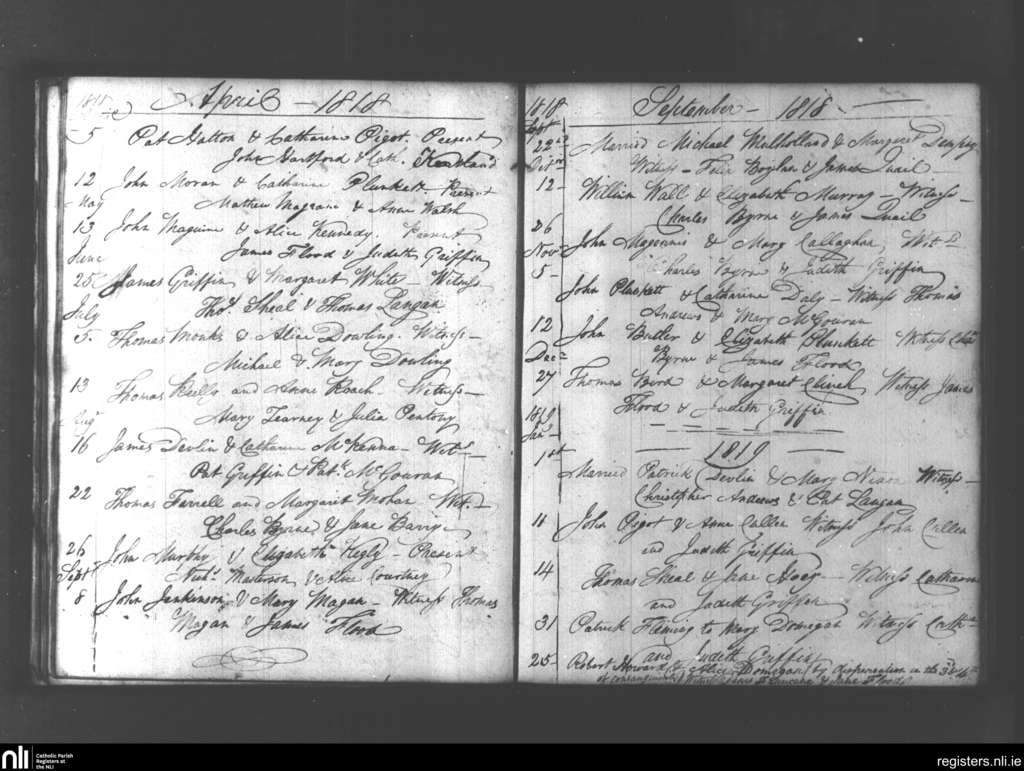 Ardcath; County of Meath; Diocese of Meath. Marriages, Apr. 1818 to Jan. 1819