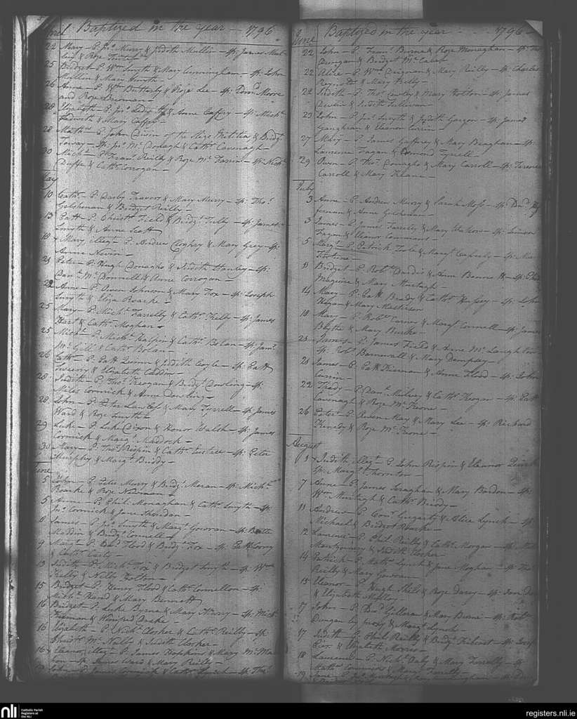 Athboy; County of Meath; Diocese of Meath. Baptisms, Apr. 1796 to Aug. 1796