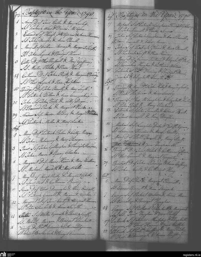 Athboy; County of Meath; Diocese of Meath. Baptisms, July 1798 to Oct. 1798
