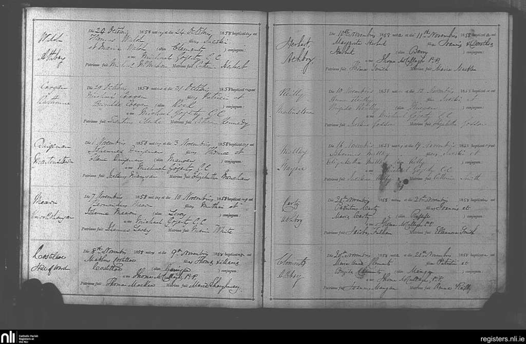 Athboy; County of Meath; Diocese of Meath. Baptisms, Oct. 1858 to Nov. 1858