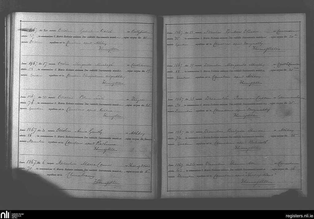 Athboy; County of Meath; Diocese of Meath. Deaths, Oct. 1867 to Dec. 1867