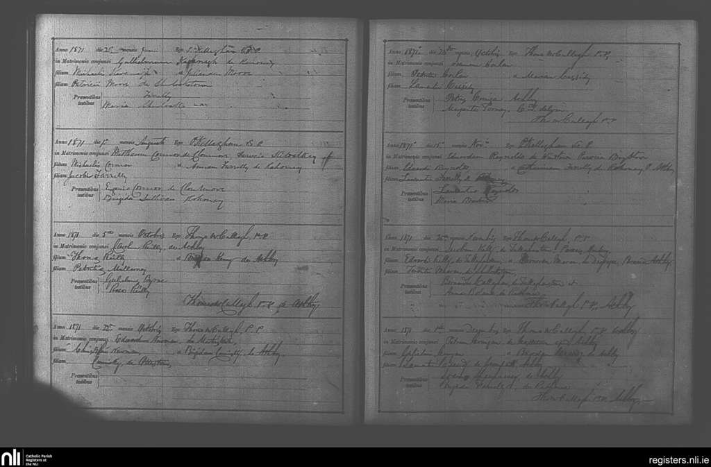 Athboy; County of Meath; Diocese of Meath. Marriages, June 1871 to Dec. 1871