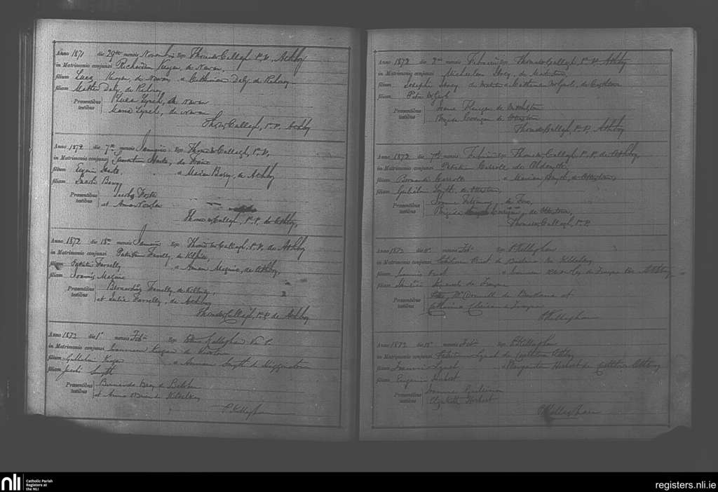 Athboy; County of Meath; Diocese of Meath. Marriages, Nov. 1871 to Feb. 1872