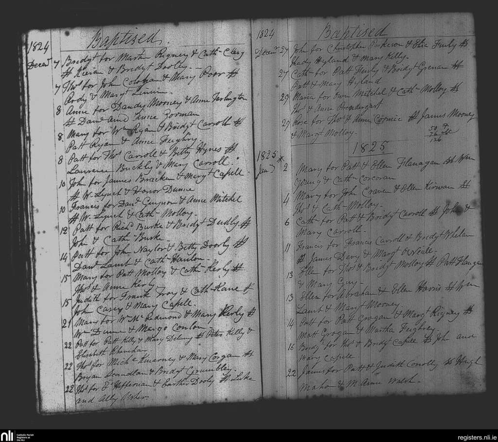 Balliboy and Killoughy; County of Offaly; Diocese of Meath. Baptisms, Dec. 1824 to Jan. 1825