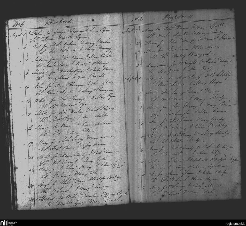 Balliboy and Killoughy; County of Offaly; Diocese of Meath. Baptisms, Aug. 1826 to Sep. 1826