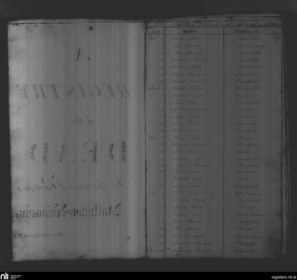 Balliboy and Killoughy; County of Offaly; Diocese of Meath. Deaths, Feb. 1826 to June 1826