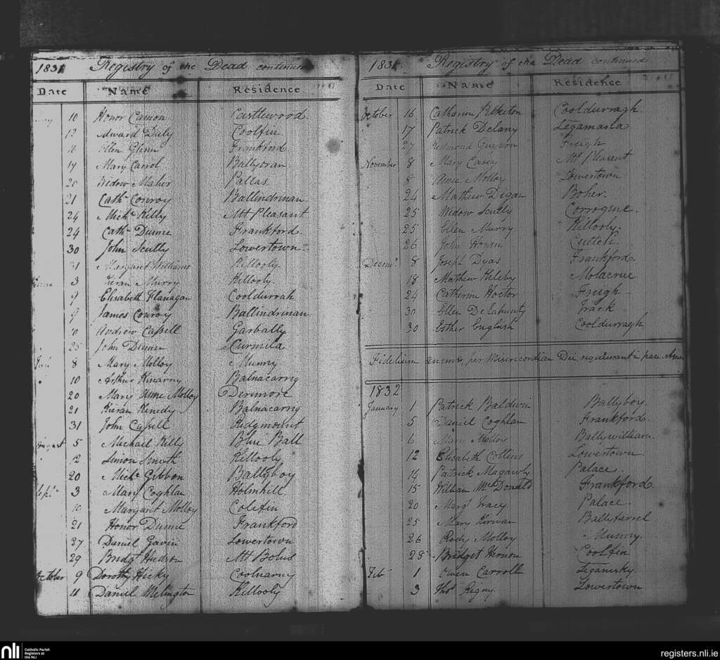 Balliboy and Killoughy; County of Offaly; Diocese of Meath. Deaths, May 1831 to Feb. 1832