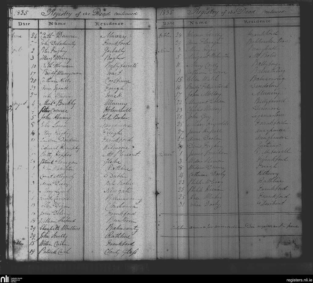 Balliboy and Killoughy; County of Offaly; Diocese of Meath. Deaths, June 1835 to Dec. 1835