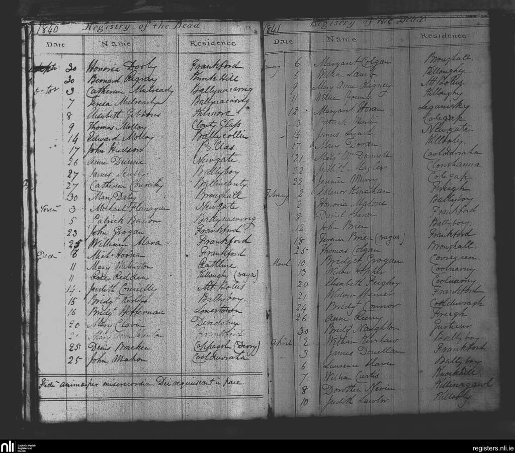 Balliboy and Killoughy; County of Offaly; Diocese of Meath. Deaths, Sep. 1840 to Apr. 1841