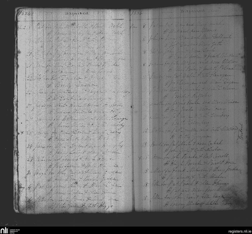 Balliboy and Killoughy; County of Offaly; Diocese of Meath. Baptisms, Apr. 1834 to May 1834
