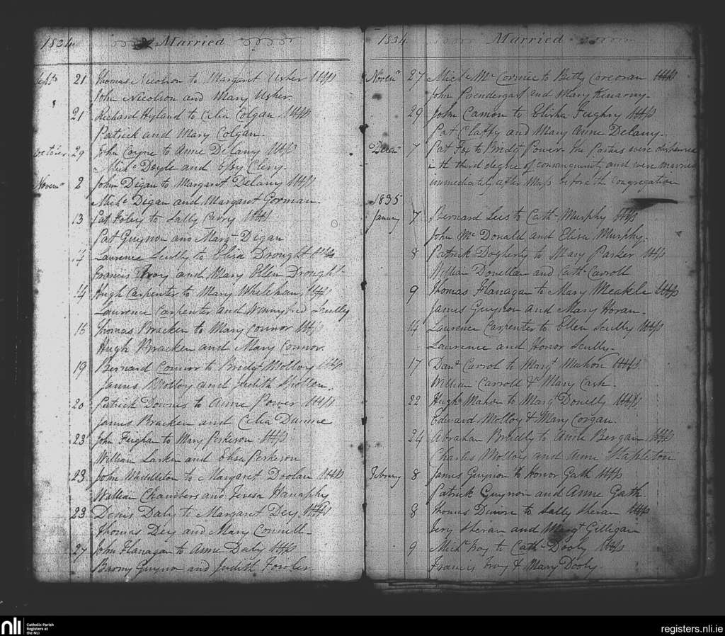 Balliboy and Killoughy; County of Offaly; Diocese of Meath. Marriages, Sep. 1834 to Feb. 1835