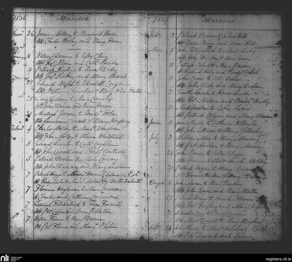 Balliboy and Killoughy; County of Offaly; Diocese of Meath. Marriages, Nov. 1836 to Sep. 1837