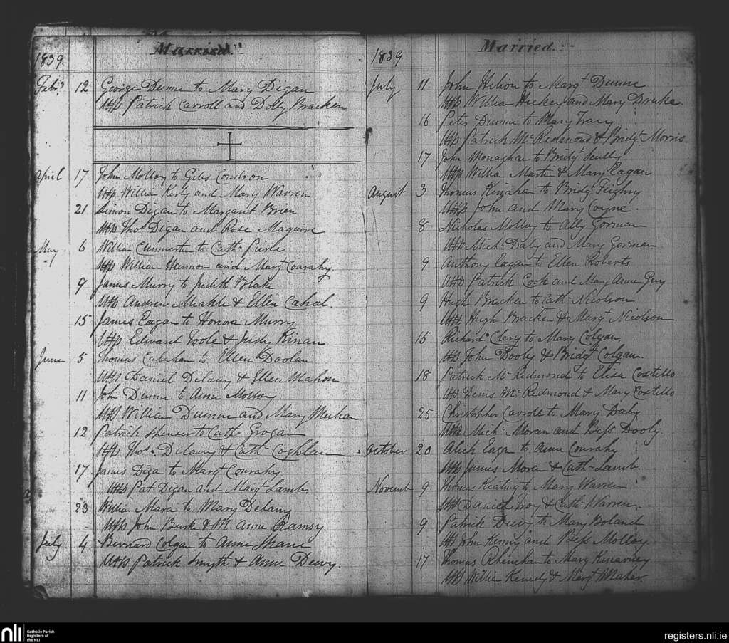 Balliboy and Killoughy; County of Offaly; Diocese of Meath. Marriages, Feb. 1839 to Nov. 1839
