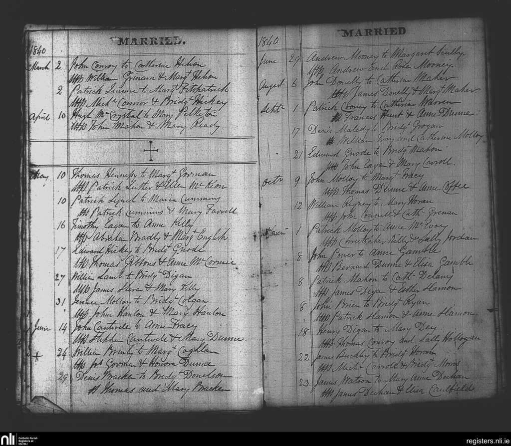 Balliboy and Killoughy; County of Offaly; Diocese of Meath. Marriages, Mar. 1840 to Nov. 1840