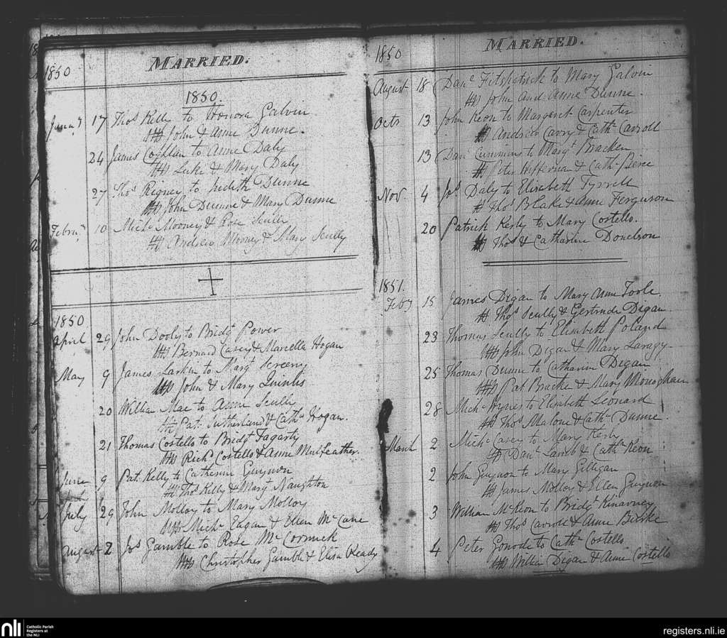 Balliboy and Killoughy; County of Offaly; Diocese of Meath. Marriages, Jan. 1850 to Mar. 1851