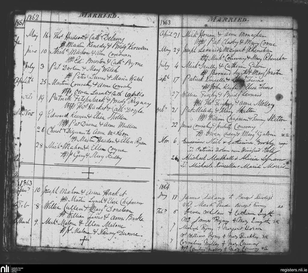 Balliboy and Killoughy; County of Offaly; Diocese of Meath. Marriages, May 1862 to Feb. 1864