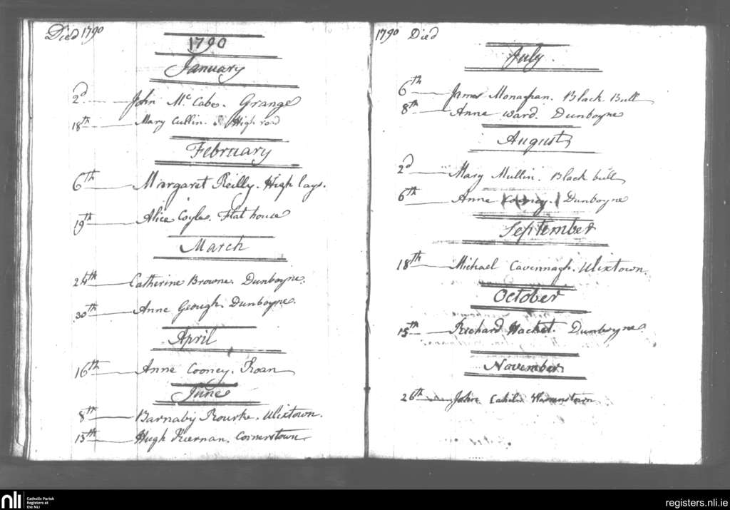 Dunboyne; County of Meath; Diocese of Meath. Deaths, Jan. 1790 to Nov. 1790