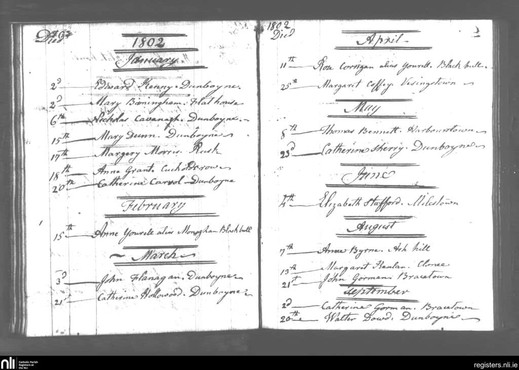 Dunboyne; County of Meath; Diocese of Meath. Deaths, Jan. 1802 to Sep. 1802