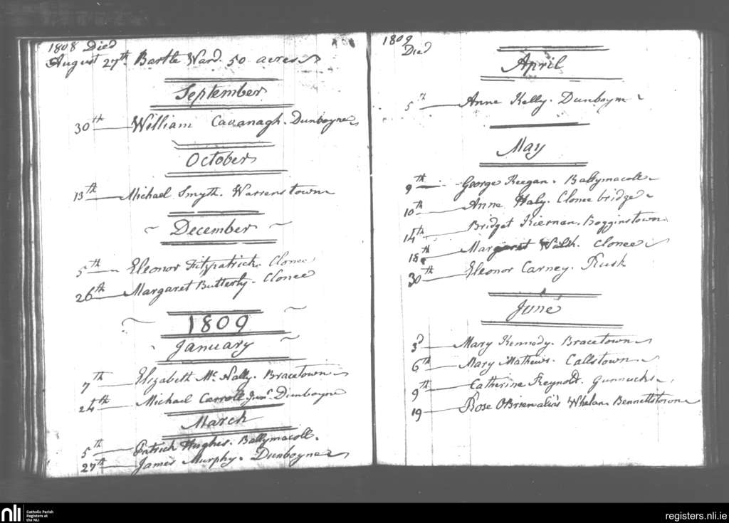 Dunboyne; County of Meath; Diocese of Meath. Deaths, Aug. 1808 to June 1809