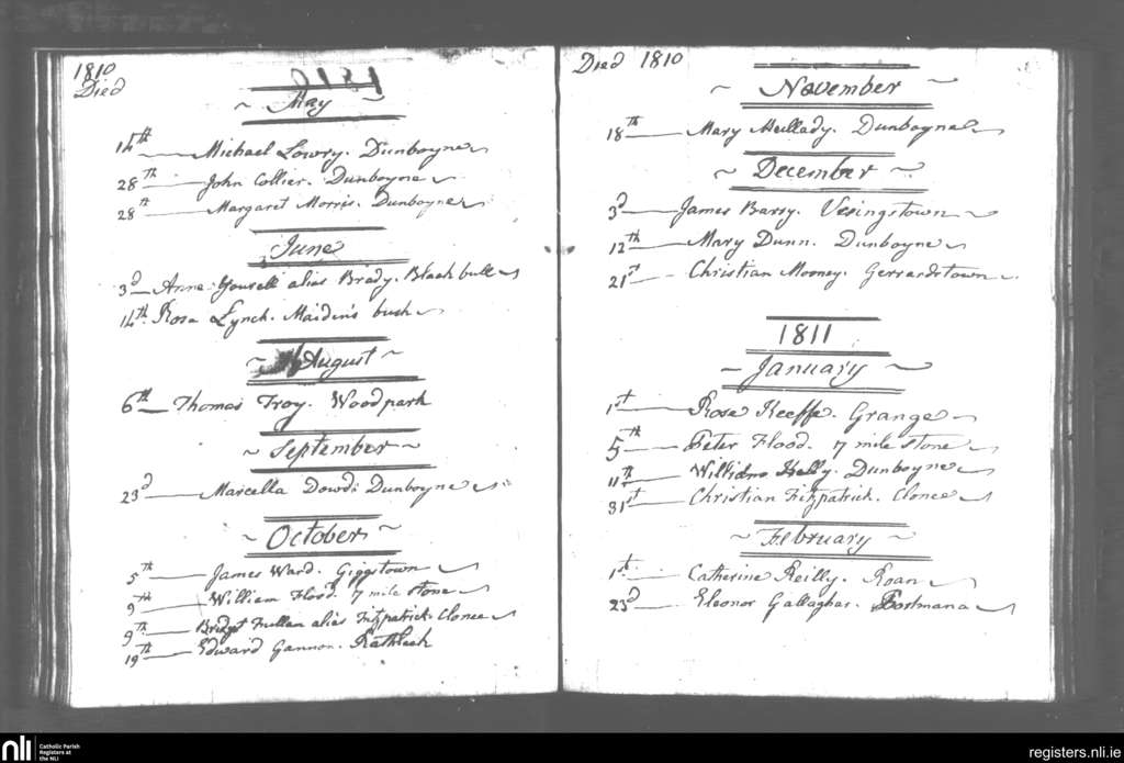 Dunboyne; County of Meath; Diocese of Meath. Deaths, May 1810 to Feb. 1811
