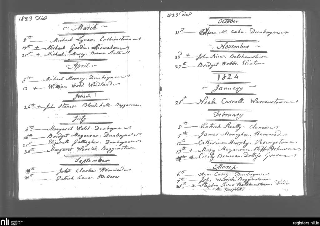 Dunboyne; County of Meath; Diocese of Meath. Deaths, Mar. 1823 to Mar. 1824