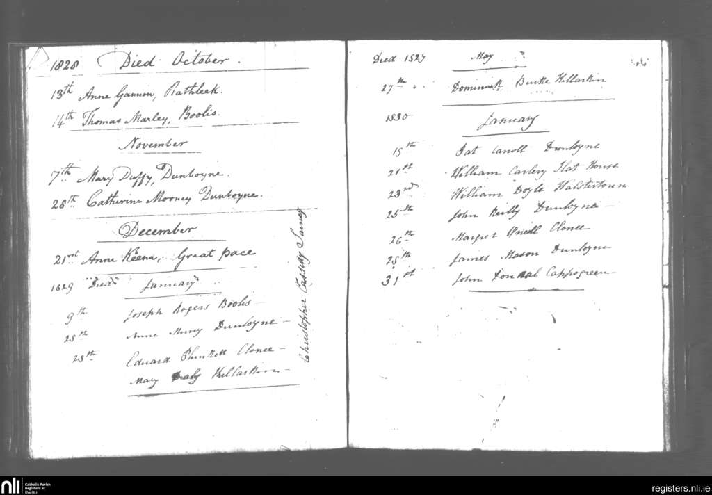 Dunboyne; County of Meath; Diocese of Meath. Deaths, Oct. 1828 to Jan. 1830