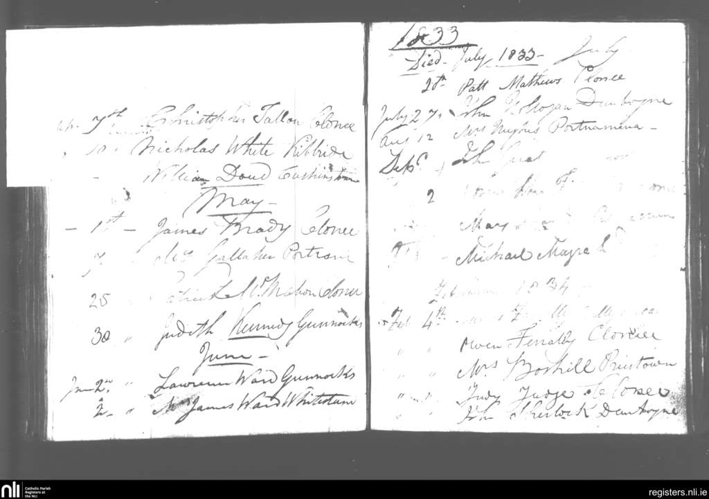 Dunboyne; County of Meath; Diocese of Meath. Deaths, Apr. 1833 to Feb. 1834