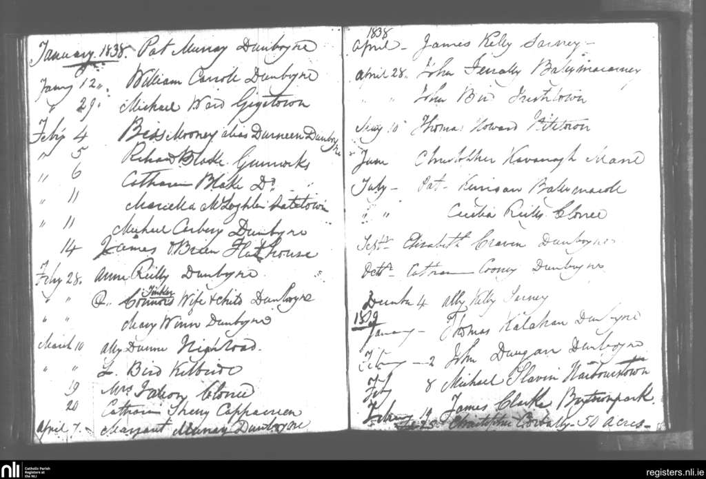 Dunboyne; County of Meath; Diocese of Meath. Deaths, Jan. 1838 to Feb. 1839